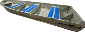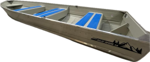 ALU-NOR 14Ft er en kvalitetsbåt som er 14ft lang, og er like i underkant av 60kg uten motor. Den er godkjent for opptil 4 voksne personer og 360kg total lastevekt. Akterspeilet er forsterket - her kan du ha opptil 15HK motor uten problem - men den går i plan selv med bare 6HK.