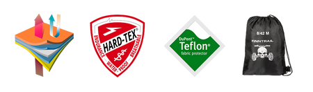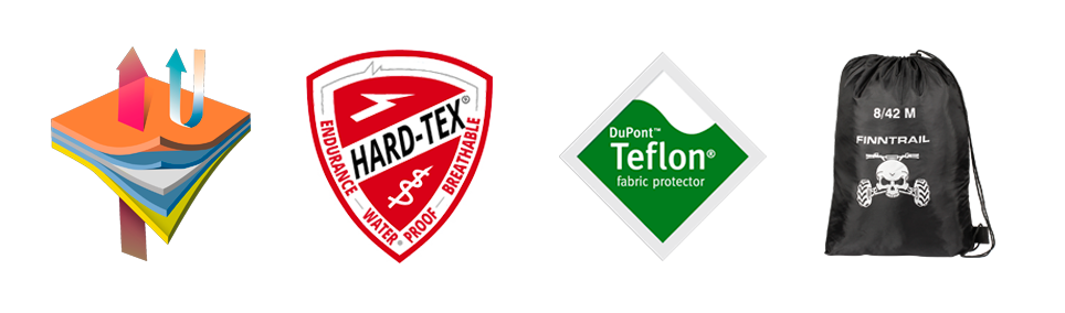 Buksen består av sterk fem-lags HARD-TEX-stoff som forsterker alle høyt utsatte slitasjeområder som knær og seteområder. HARD-TEX-stoffet hindrer slitasje, spesielt utsatt er indre lårområde, der er det ingen sømmer i det hele tatt. Selebuksen fra FINNTRAIL er en holdbar og lett bukse som sikrer deg komfort og vannbeskyttelse.