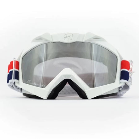Opplev maksimal sikt og beskyttelse med ARIETE ADRENALINE Primis Plus Goggles. Perfekt for motorsykkel- og ATV-entusiaster som krever både stil og funksjonalitet. Med et moderne design i hvit med røde og blå detaljer, kombinerer de estetikk med høy ytelse.