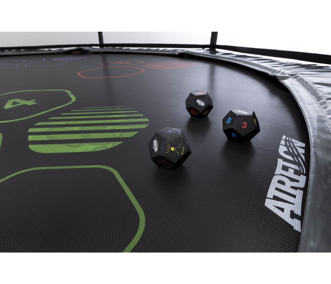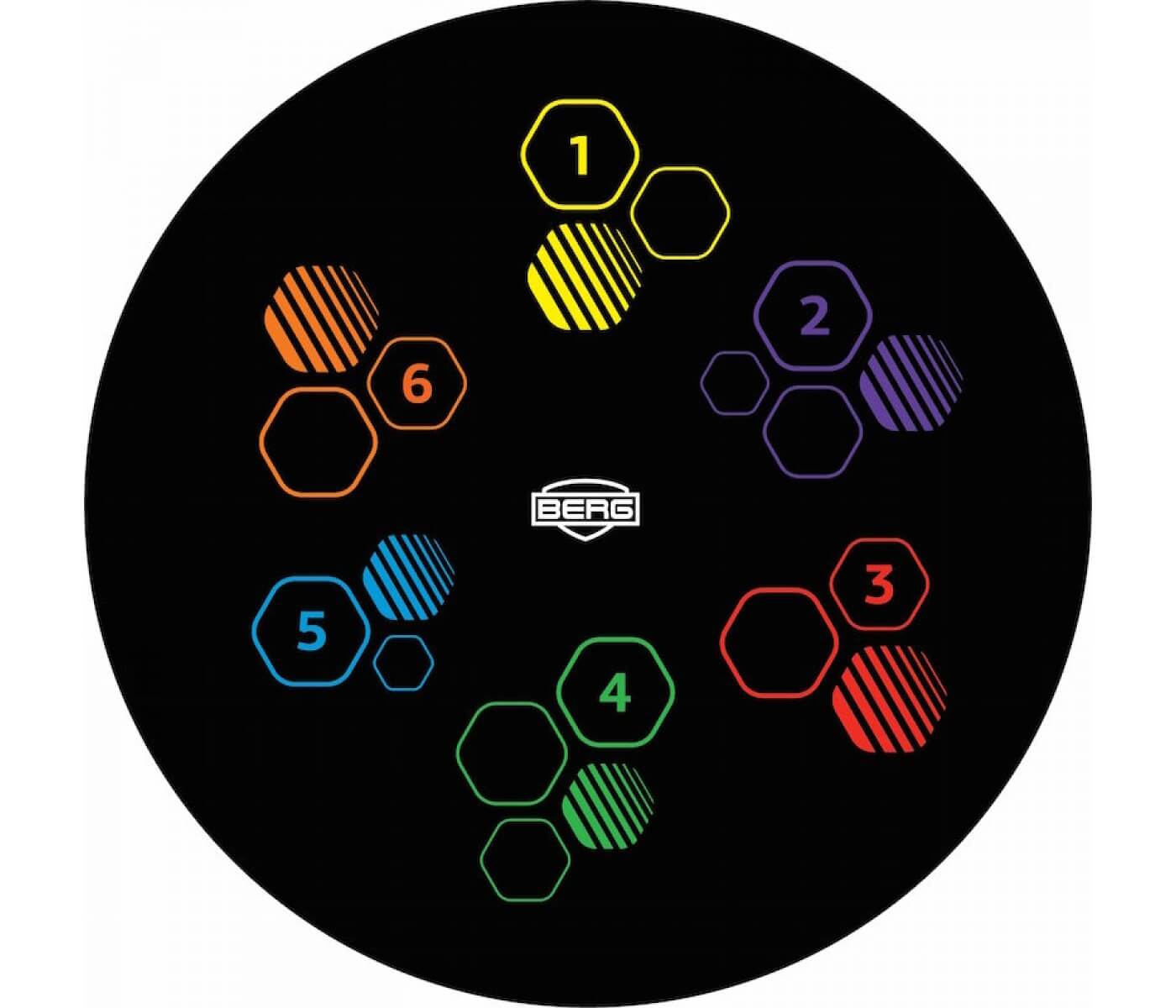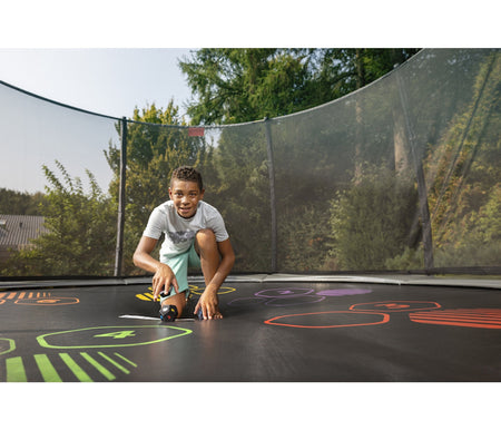 BERG Levels-trampoliner er utstyrt med en stor hoppeoverflate med fargede symboler, tre myke baller og kort som forklarer spillet på seks språk. Et morsomt og aktivt spill for enhver hage.