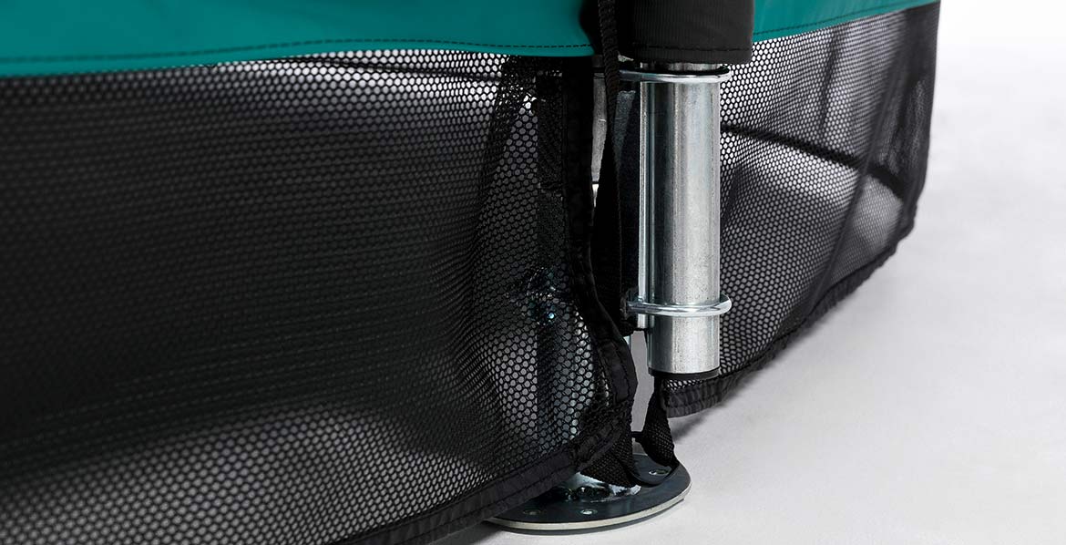 - Trampolinen er lett tilgjengelig på grunn av et lavt påstigningstrinn.