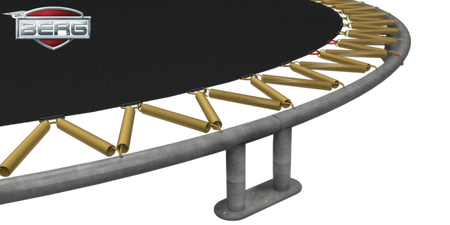Rammen til Elite-trampolines har veldig lang levetid. Dette skyldes den store diameteren på 42 mm og veggtykkelsen på 2 mm. I tillegg har rammen et solid lag av sink, og rammen på Regular-trampolinene har beskyttende svart pulverlakkering. Rammen motstår derfor rust ekstra godt.