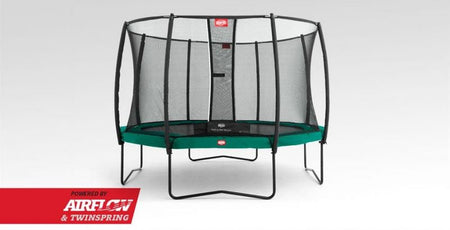 BERG Champion-trampolinen tilbyr fantastisk hoppekomfort for alle. Utformingen av Champion sørger for at du kan hoppe trygt og lenge på en trampoline av utmerket kvalitet. Kombinasjonen av TwinSpring Gold-fjærer med AirFlow-hoppematten sikrer mindre luftmotstand og en større hoppeoverflate. Tilsammen betyr dette bedre og høyere hopp! Safety Net Deluxe gjør trampolinen komplett. Takket være nettets høye kvalitet, det tykke skummet rundt stolpene og det sterke materialet på kantene, blir levetiden på nettet ekstra lang. Den unike buede konstruksjonen på toppen av nettet sikrer at trampoline alltid ser perfekt ut.