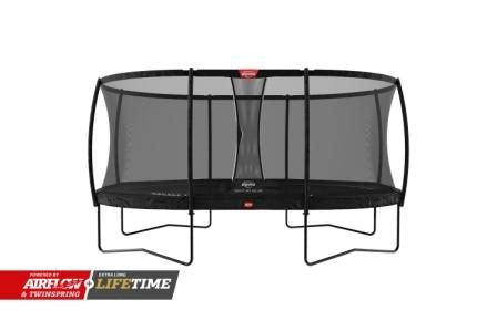 Få til de beste hoppene på BERG Grand Champion! Med AirFlow-hoppematten og TwinSpring Gold-fjærer kan du ta noen herlige selvsikre hopp. Mattens ovale form betyr at du kan hoppe over hele lengden, og rammen er like robust som en rund ramme.