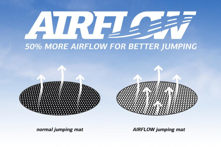 - Hoppematten AirFlow slipper gjennom 50 % mer luft. Resultatet er mer behagelig og fleksibel hopping!