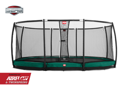Ekstrautstyret sikkerhetsnett (220 cm!) passer til Regular- og FlatGround-trampolinene. Dette er i tillegg til Ultim Champion FlatGround den eneste FlatGround-trampolinen som kan utstyres med nett.