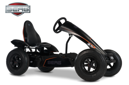 BERG Black Edition kombinerer kraft og stil i én rå gokart. Med sitt helsvarte design, diskret oransje detaljer, frontspoiler og racingdekk får du en tråbil som virkelig skiller seg ut på både asfalt og grus. Den er bygget for barn fra 5 år og oppover – også voksne vil ha det gøy takket være den ekstra lange rammen og det justerbare setet.