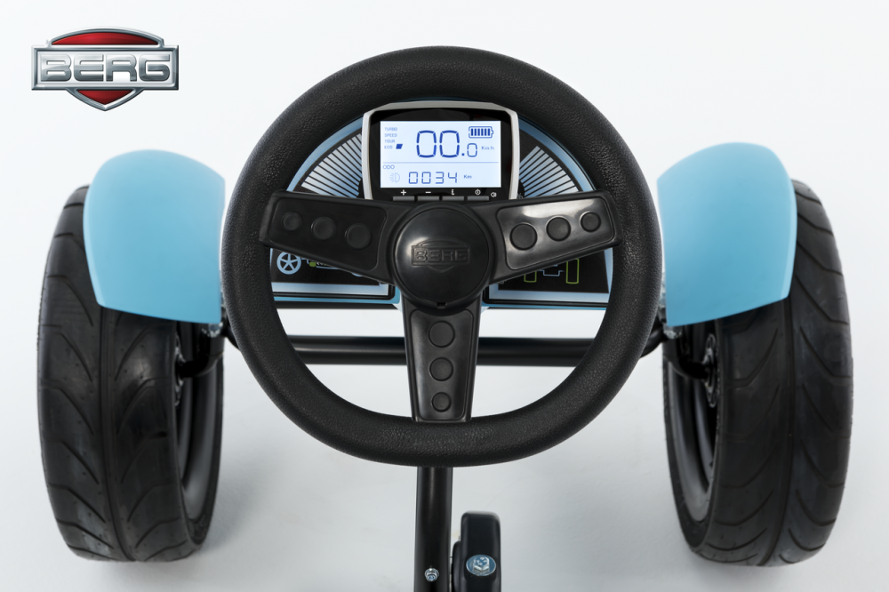 Ønsker du å ha en bekymringsfri kjøreopplevelse med pedalstøtte? I så fall har vi en innovativ BERG E-tråbil for deg. Superhard akselerasjon? Eller foretrekker du å kjøre rundt komfortabelt og enkelt? På gress eller i terreng? Alt dette er nå mulig. Jo hardere du trår med pedalene, jo mer støtte vil du få fra motoren. Du kan til og med nå hastigheter på 16 km/t! Kort sagt, jo hardere du trår med pedalene på tråbilen din, jo bedre blir belønningen.