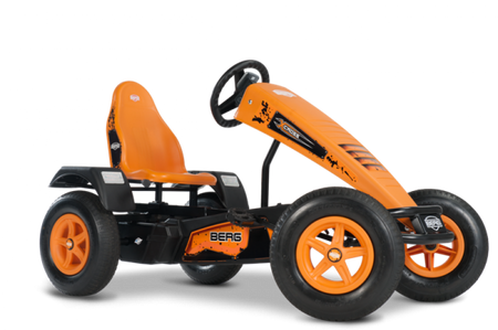 Med sitt stilige oransje og svarte design skiller BERG X-Cross E-BFR seg tydelig ut fra mengden. Denne elektriske tråbilen kombinerer et sporty utseende med høy komfort og kraftig ytelse – perfekt for både små og store eventyrlystne sjåfører.
