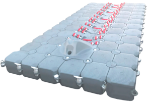 Den er bygget ut av modulære flytende kuber 50 x 50 x 40 cm og kroppsdeler 100 x 100 cm utstyrt med horisontale og laterale ruller. Inngangspartiet er V-formet med 1. rulle ved vannstand. På enden av båtløftet har hodedelen en hevet baug for å unngå overskyting.