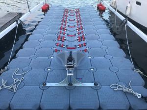 Den er bygget ut av modulære flytende kuber 50 x 50 x 40 cm og kroppsdeler 100 x 100 cm utstyrt med horisontale og laterale ruller. Inngangspartiet er V-formet med 1. rulle ved vannstand. På enden av båtløftet har hodedelen en hevet baug for å unngå overskyting.