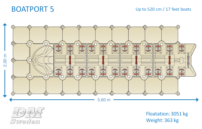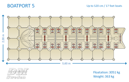 BoatPort Båtbrygge 5, 560cm x 200cm, flytekapasitet 3051kg
