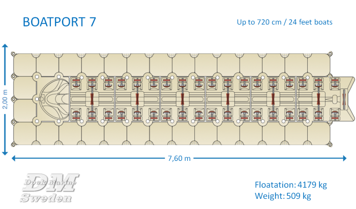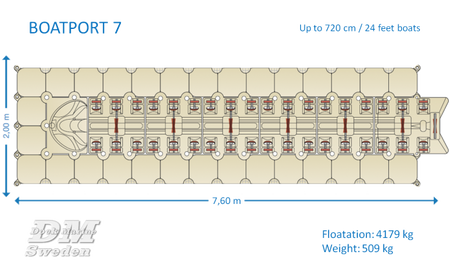 BoatPort Båtbrygge 7, 760cm x 200cm, flytekapasitet 4179kg