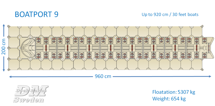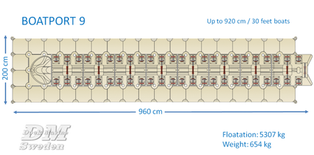 BoatPort Båtbrygge 9, 960cm x 200cm, flytekapasitet 5307kg