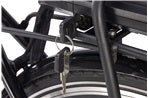 Batteriet er låst til sykkelen for å sikre den mot tyveri. Den kan lades mens den er montert på sykkelen, eller du kan ta ut batteriet og lade det hvor du vil.