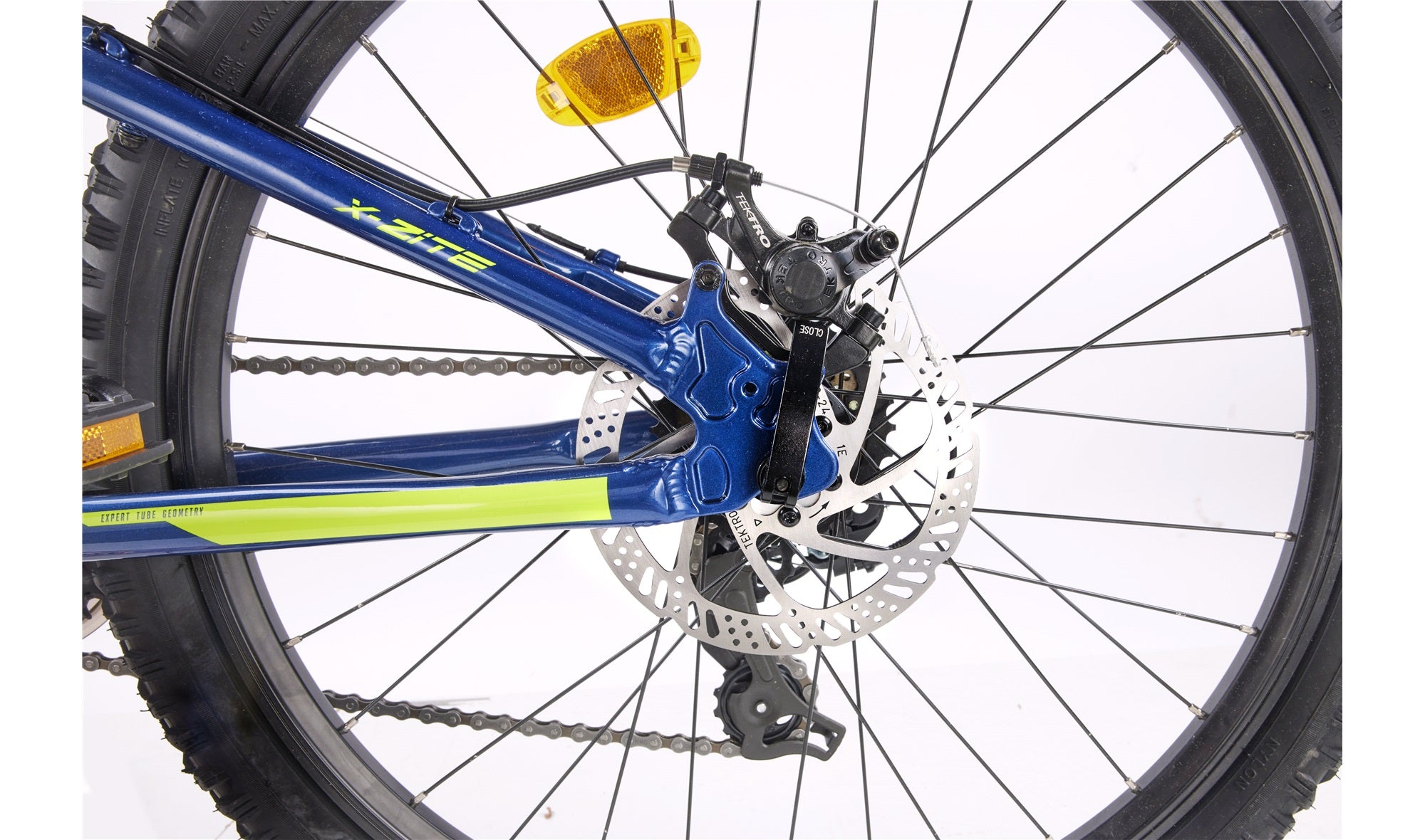 X-Zite 24.21 er en moderne og slitesterk terrengsykkel designet for barn i alderen 8–11 år. Perfekt for både skolevei og fritid i variert terreng. Den lette aluminiumsrammen gir høy slitestyrke og lav vekt, noe som gir barnet bedre kontroll og sykkelglede.