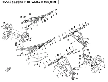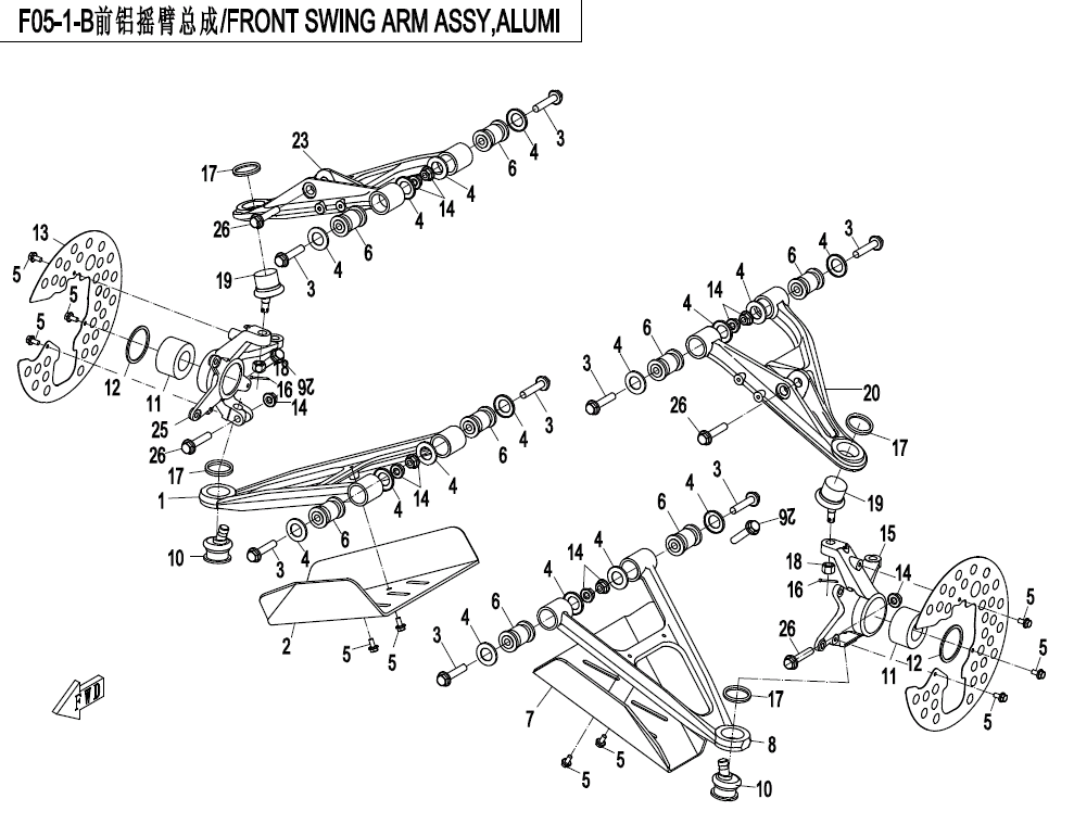 1. FRONT LOWER SWING ARM, RH | X8K-05-1B-1