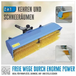 Utrolig hendig redskap for feiing av større parkeringsarealer, fortau, gårdsplasser og annet. Feiemaskinen påmonteres tohjulstraktoren i få enkle trinn.