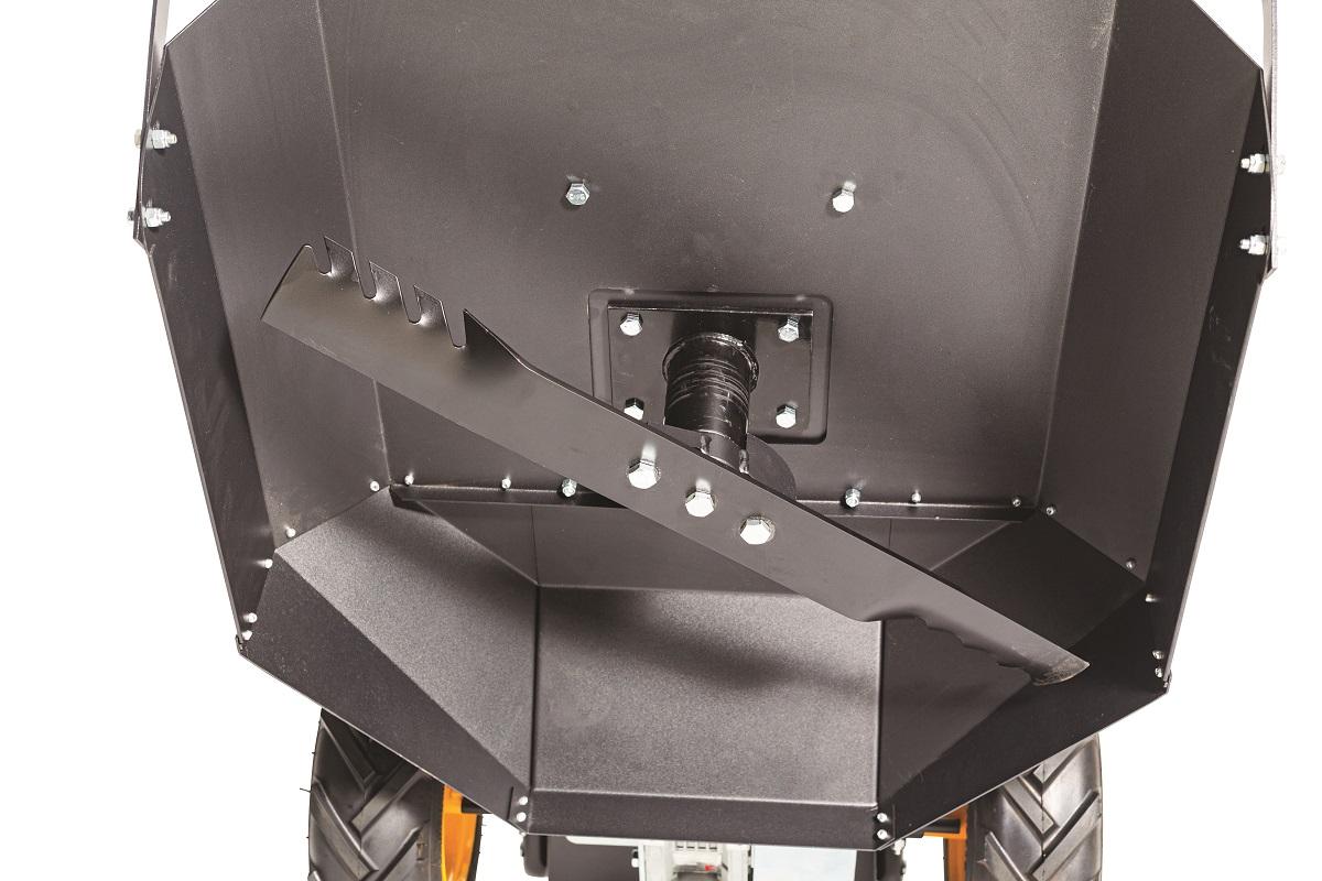 Under det store skjæreskjoldet kutter det faste bladet effektivt stengler på opptil 10 mm når det roterer med 2050 o/min.