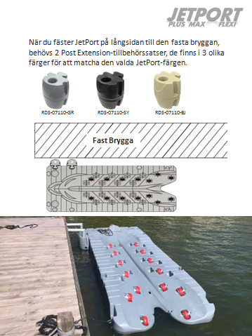 Når du fester JetPort på langsiden til en fast brygge, er det nødvendig med disse 2 festene, de er tilgjengelige i 3 forskjellige farger for å matche den valgte JetPort-fargen.