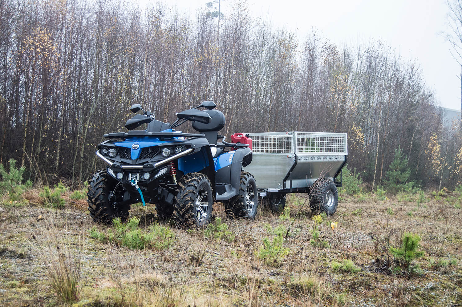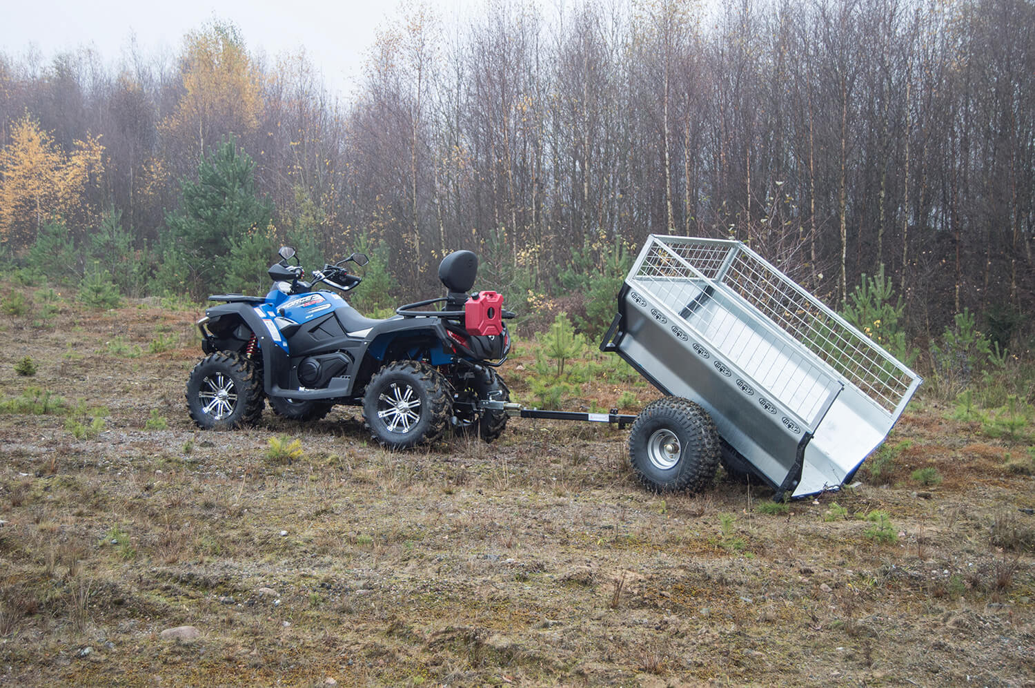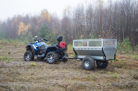 Gårdsvogn med tippbart plan og vribart drag som kan laste opptil 640kg. Kraftig utformet i stålplate med pulverlakkert stålkonstruksjon.