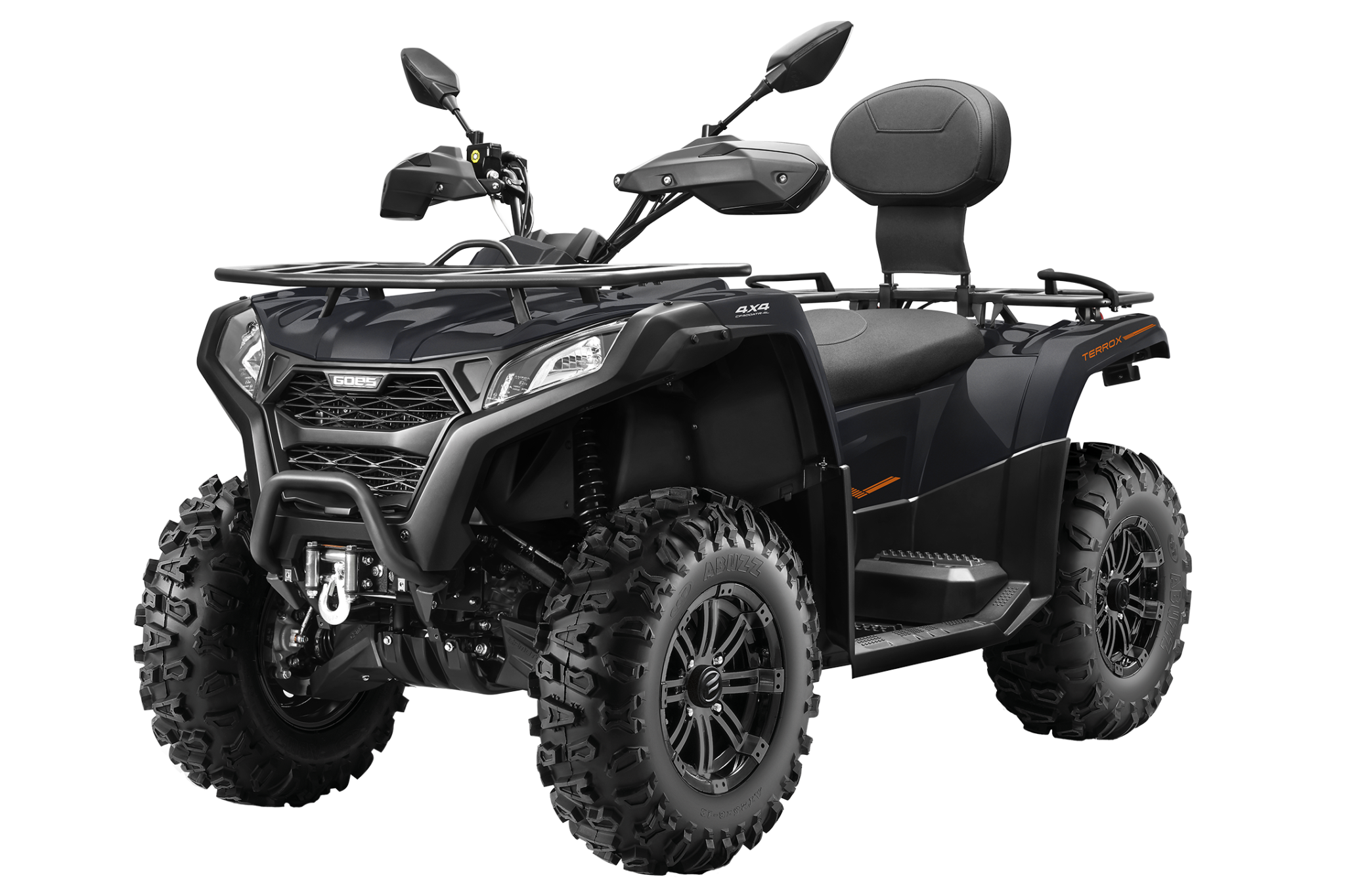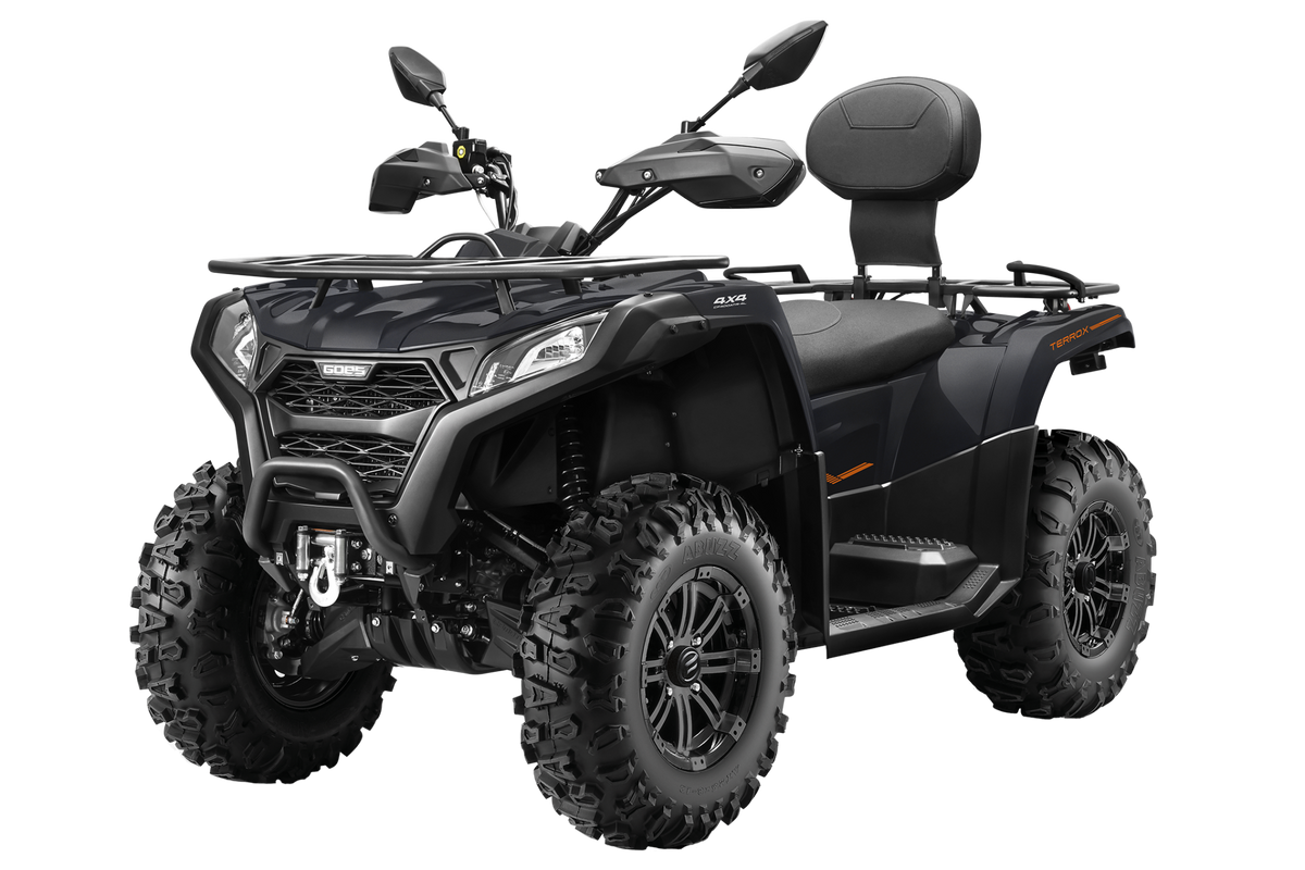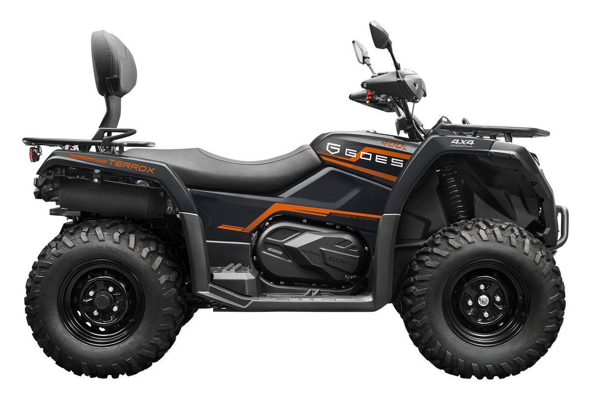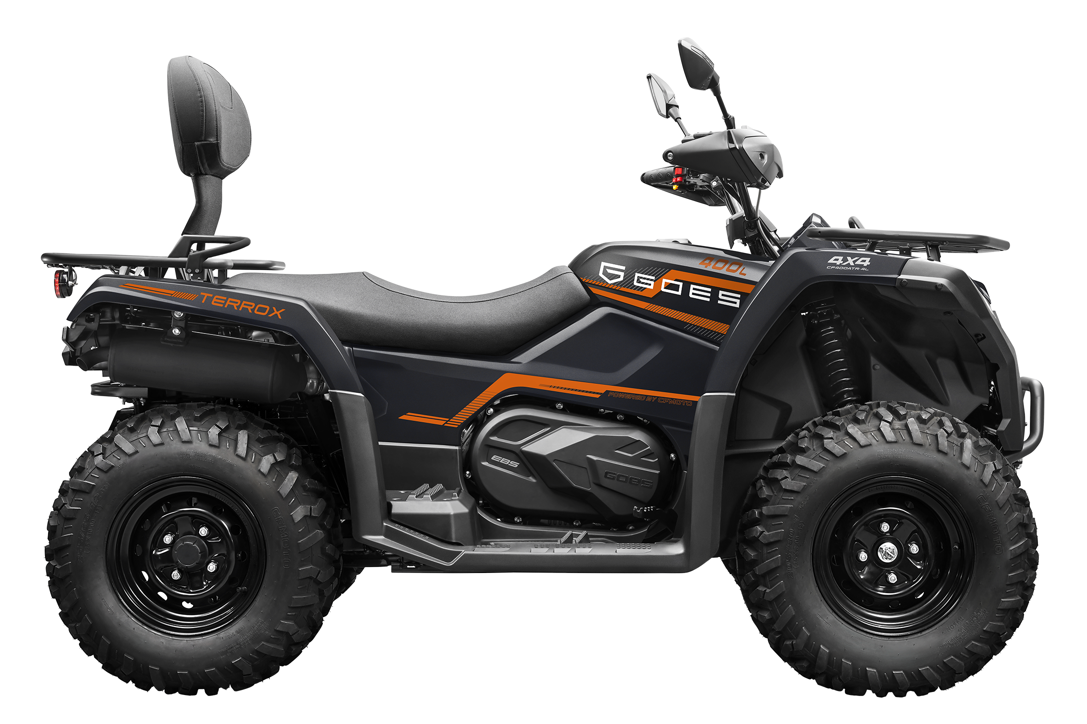 Goes produseres og eies av Cfmoto GOES 400 TERROX er en kompakt og fleksibel maskin beregnet for arbeid og med alle egenskapene du trenger.GOES 400 TERROX er en pålitelig maskin, uansett om du skal brøyte snø om vinteren, dra tømmervogn eller bare kjøre for moro skyld! Med en motor på 400 cc, girkasse og EFI får du en maksimal effekt som fungerer for alle aktiviteter. Fås i lang versjon. Stålfelger, trekkrok og vinsj som standard. Motor: