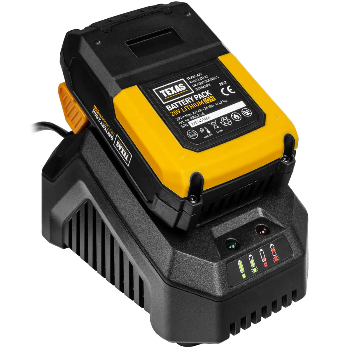 1 stk. 20V / 2,0 Ah batteri og 1 stk. hurtiglader medfølger