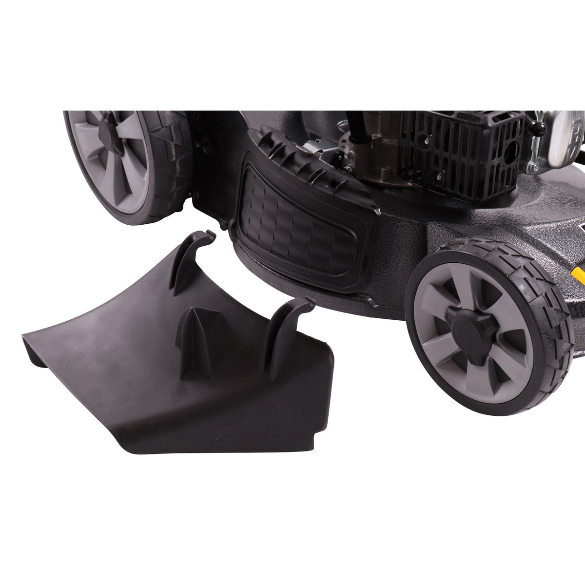 Klippebredden er på hele 53 cm, som inkluderer et praktisk vaskemunnstykke for enkel rengjøring med hageslangen og kommer i en 4-i-1 versjon, som inkluderer både oppsamling, bakutkast, sideutkast og bioskjæring.