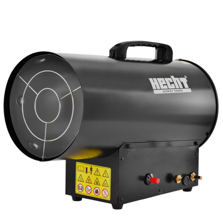 Hecht 3016 Gassvarmer på 30 kW passer til oppvarming av ventilerte områder som for eksempel byggeplasser, verksted og renoveringsobjekter. Maksimal anbefalt oppvarmingsoverflate er 280 kvm. Gassvarmeren trenger tilgang til gass og strøm for å drive viften.