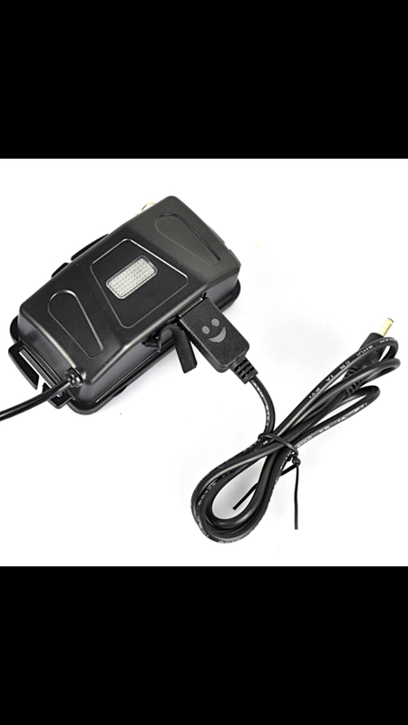 Leveres med vanlig europeisk lader. Batteriene varer i 2.5timer på full styrke når den er fullstendig oppladet. Veier kun 260gram inkl batteri