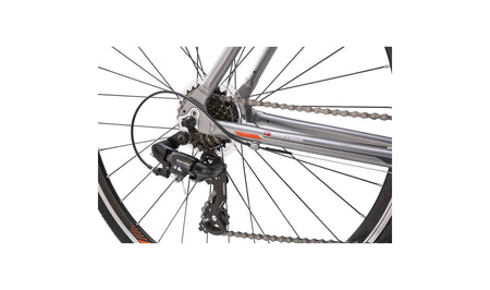 Detaljer som høyprofil aluminiumsfelger med rustfrie eiker, fotbremse bak og V‑bremse foran gir trygg kjøreopplevelse. Setepinne, styre, styrestem og støtte er alle i aluminium. Sykkelen er sertifisert etter ISO 4210, har 20 års rammegaranti og veier ca. 15 kg.