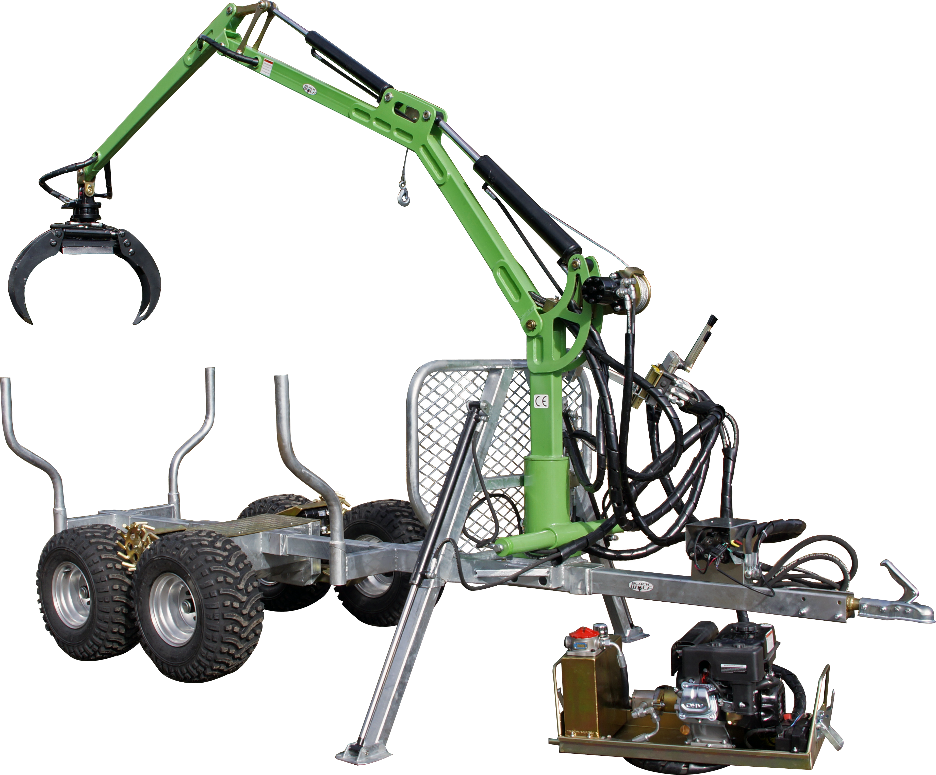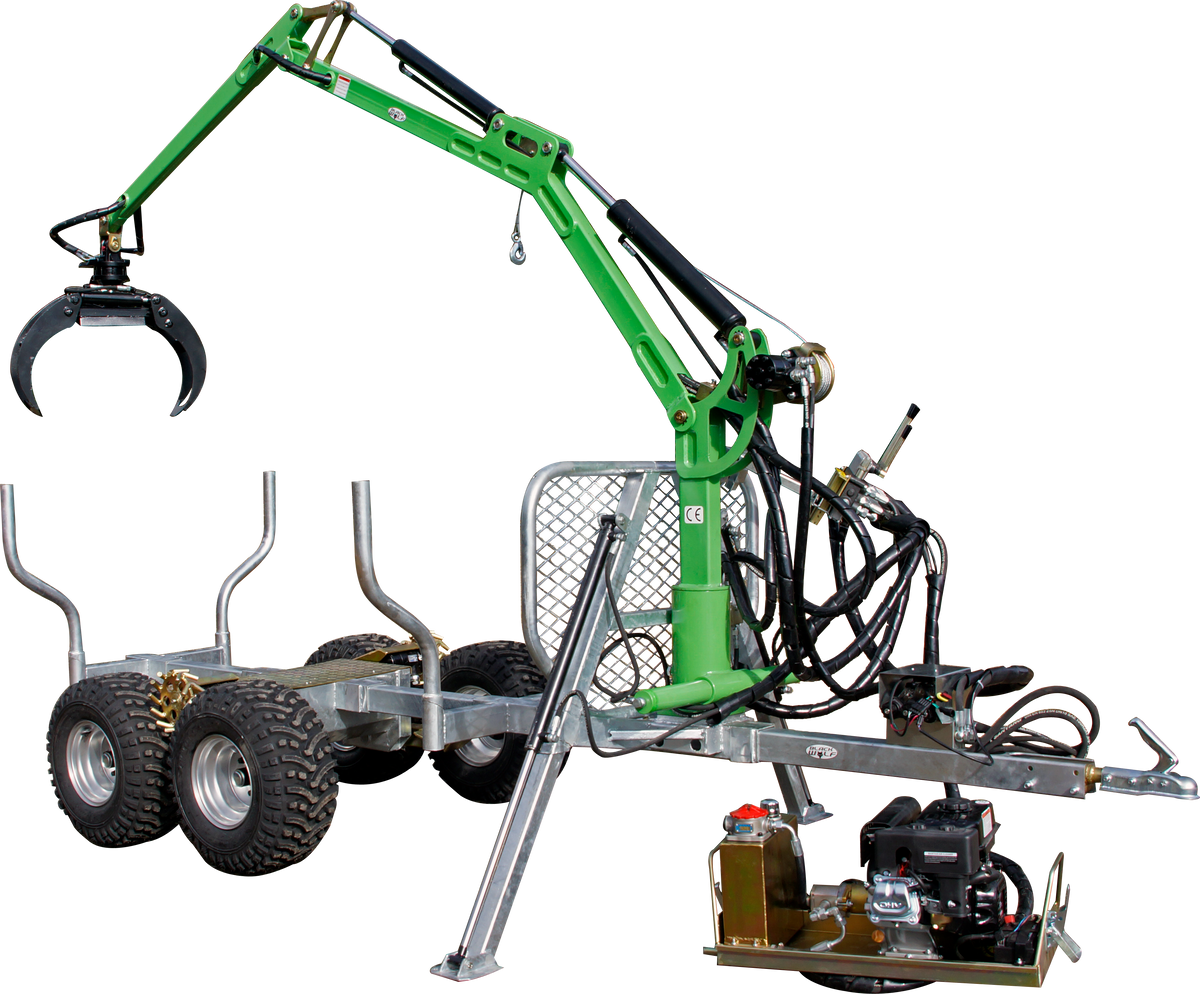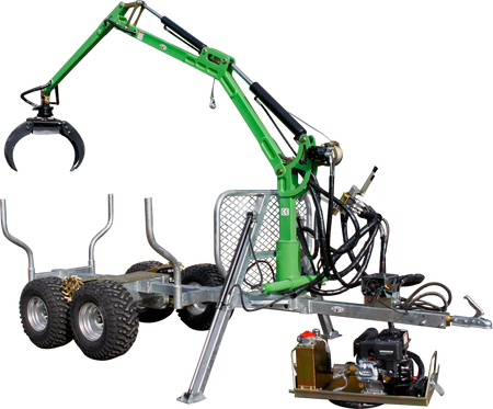 Den hydrauliske kranen gjør lasting og lossing enkelt og effektivt, og gir deg full kontroll selv over tunge og uhåndterlige stokker. Store hjul med grovt mønster gir stabilitet og fremkommelighet på utfordrende underlag som gjørme, snø og ulendt terreng.