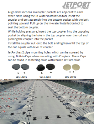When using floating dock attachments, you can cover the pipe holes in JetPort with these bolt-in-caps.