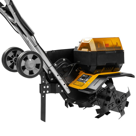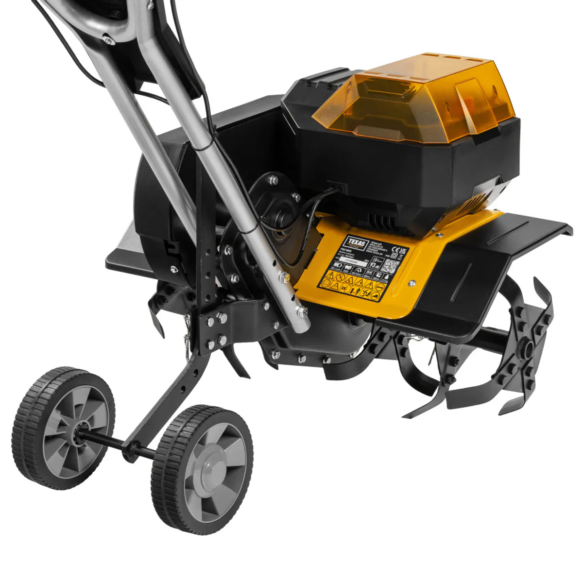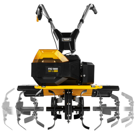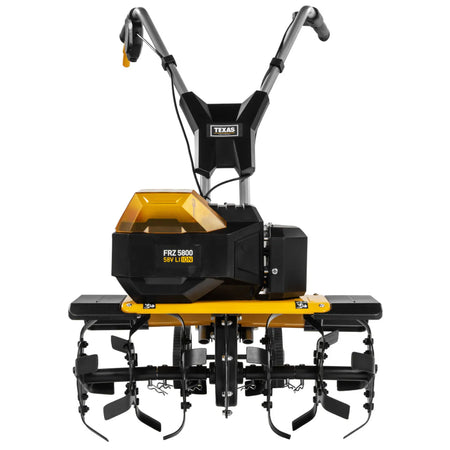Med TEXAS FRZ5800 får du en batteridrevet jordfreser som gjør et solid arbeid – enten det gjelder å bearbeide bed, grønnsakshagen eller mindre åkre. Den minner både i kraft og bredde om en bensindrevet modell, men tilbyr langt enklere håndtering, mindre støy og vibrasjoner, og nesten intet vedlikehold.