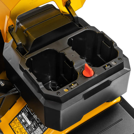 Drives av 1 stk. 58V-batteri, men har plass til 2 stk. (ett i bruk, ett i reserve)