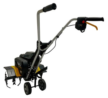 Maskinen er utstyrt med kombinert jordspyd og solide transporthjul som snus etter behov – enten for fresing eller transport.