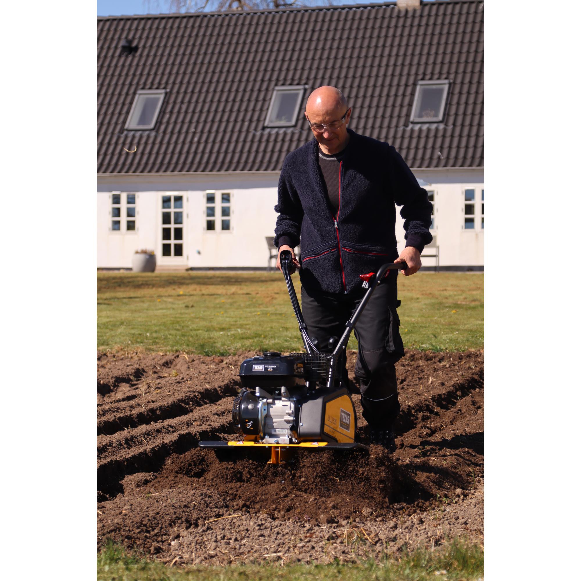 En sterk 212 cc TG725D-motor, justerbar arbeidsbredde mellom 36/57/85 cm og 33 cm arbeidsdybde.