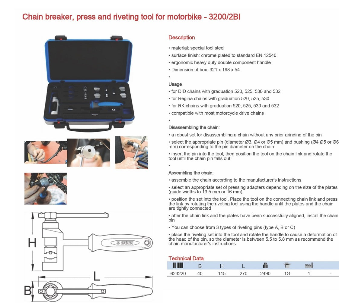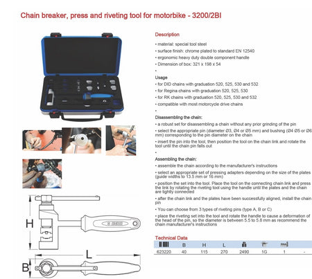 Gjør vedlikehold av sykkel- eller motorsykkelkjeder raskt og problemfritt med denne kjedebryteren. Perfekt for både hobbybrukere og profesjonelle mekanikere.