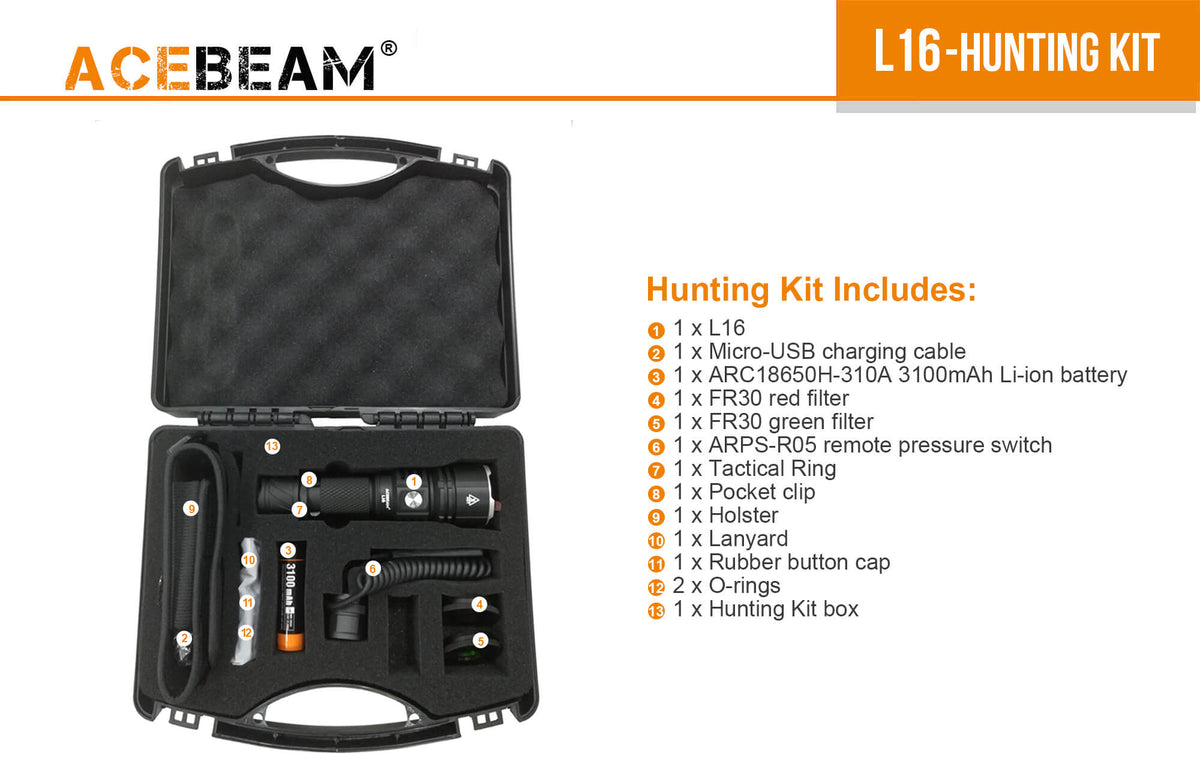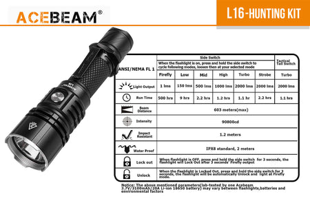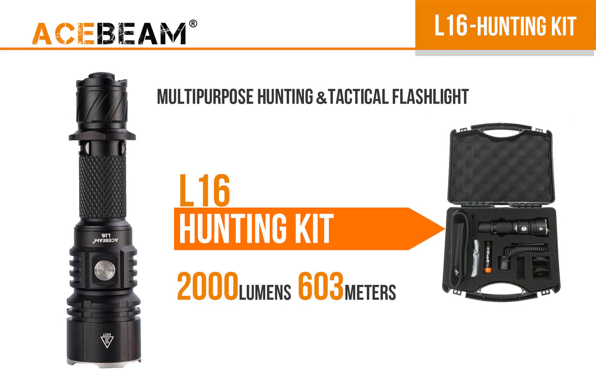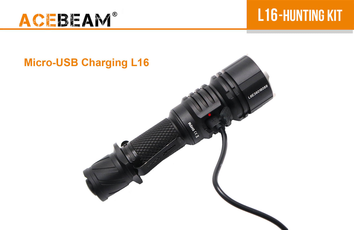 AceBeam L16 er en oppladbar lommelykt med micro-USB designet for politi, militær og lignende.