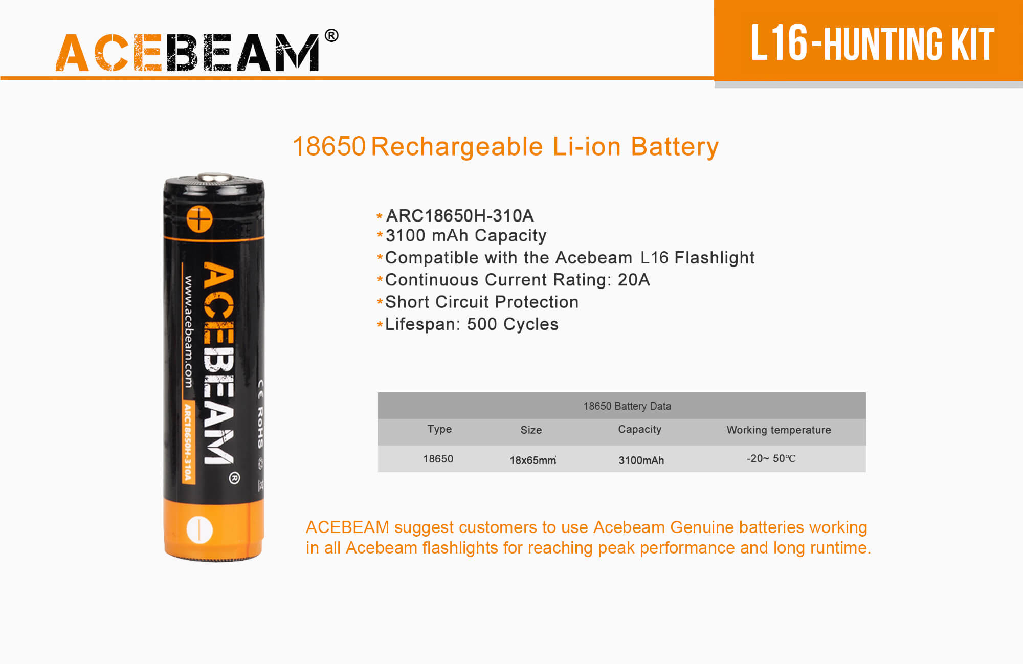 1 x ARC18650H-310A 3100mAh Li-ion batteri (oppladbart)