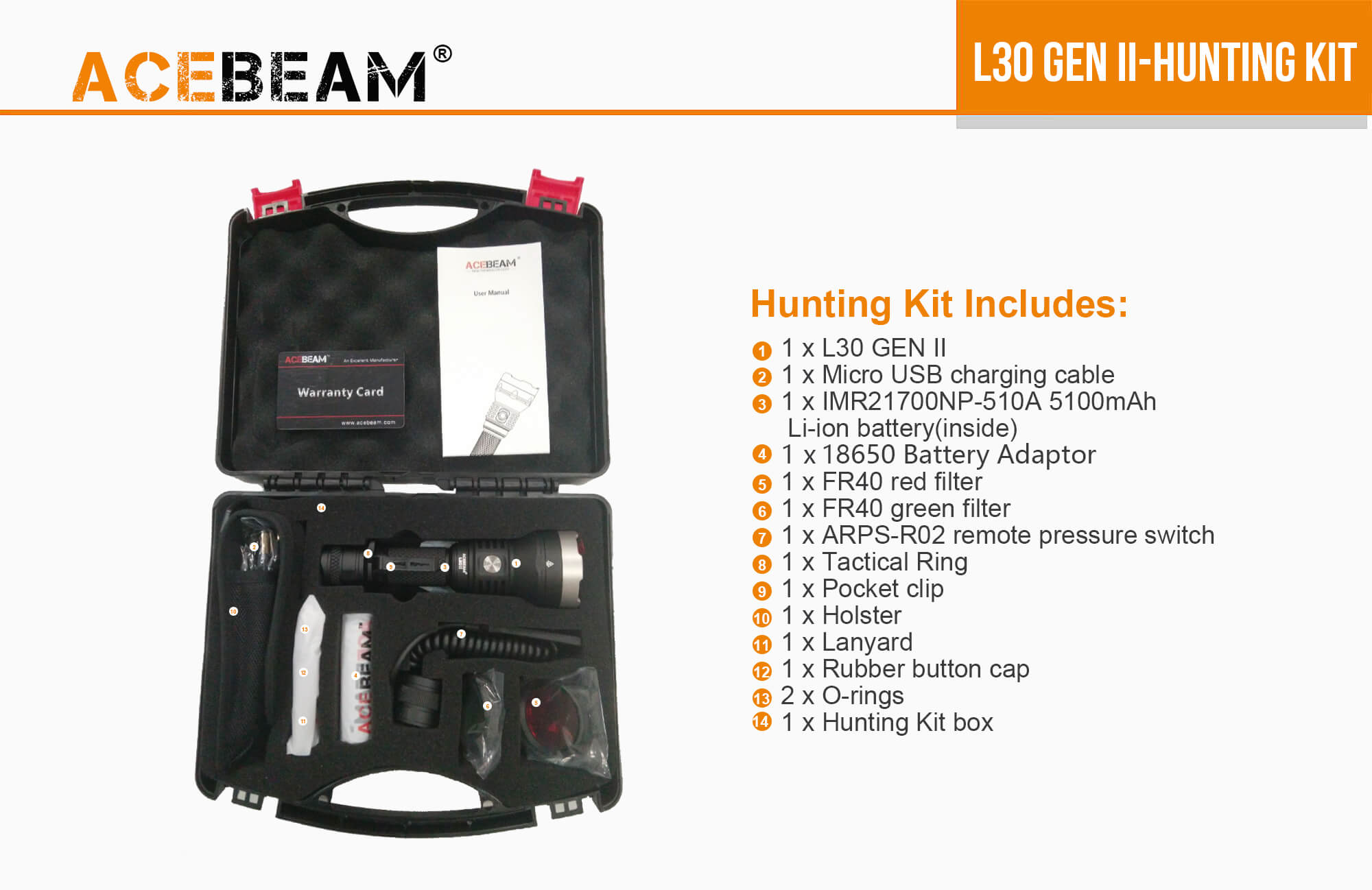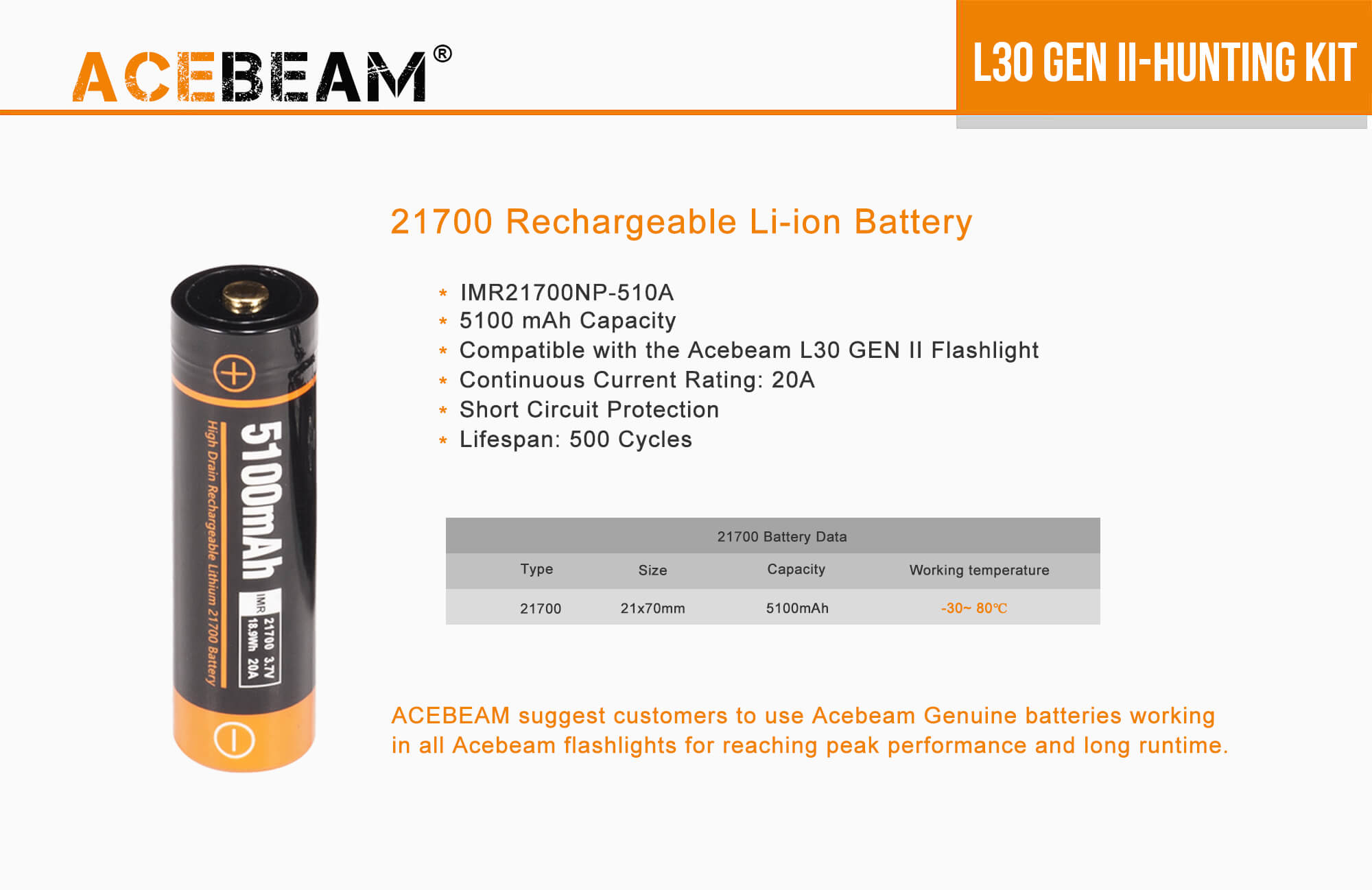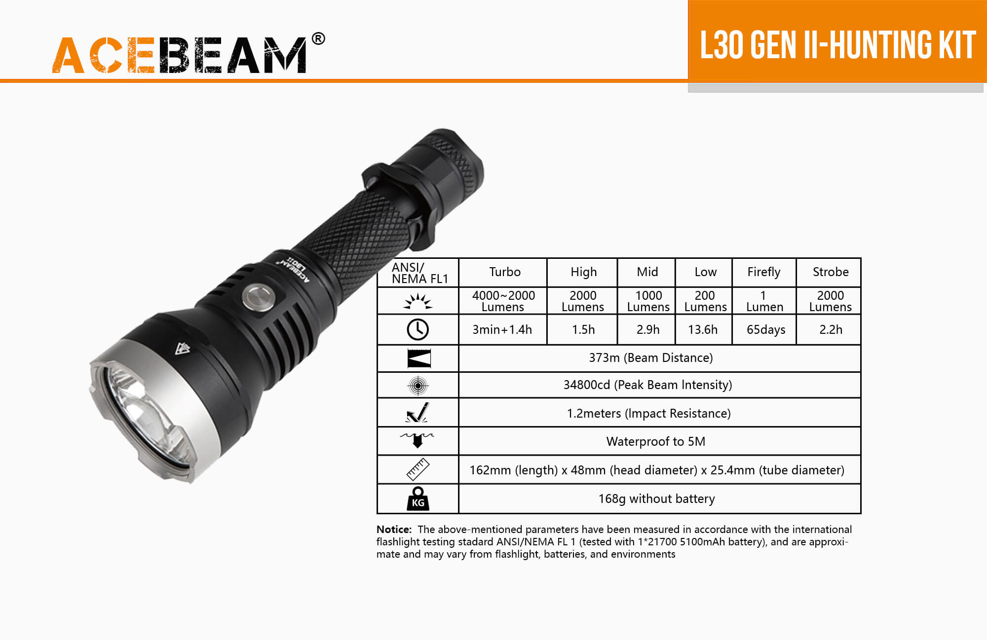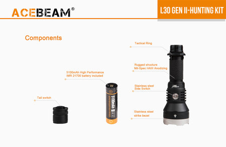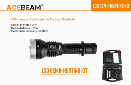 Acebeam L30 GEN II er oppgradert og designet for 21700 batterier, den kan lyse en blendende stråle på hele 4000 lumen opptil 373 meter unna!