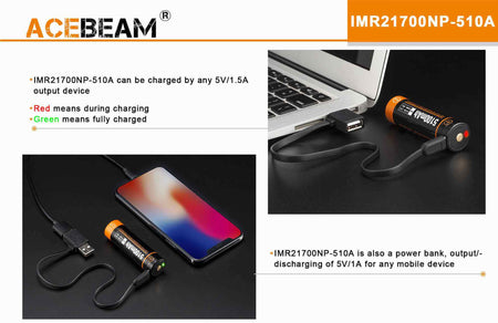 - 21700 Batteri med innebygd Micro-USB ladeport