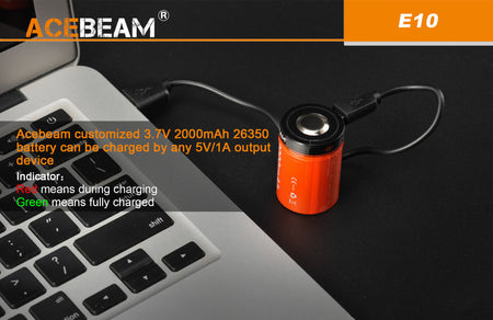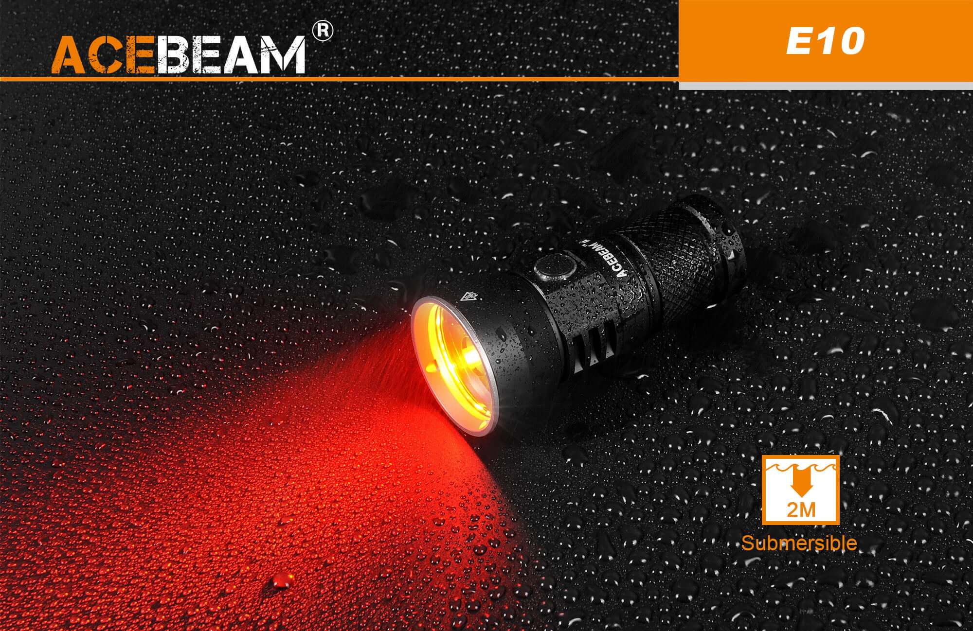ACEBEAM E10 tilbyr 3 forskjellige LED-alternativer, avhengig av dine behov: hvitt lys LED, grønt lys LED og rødt lys LED.
