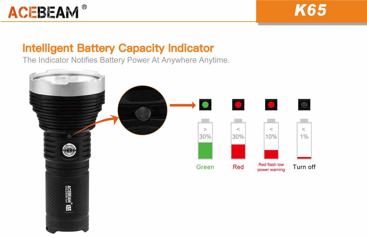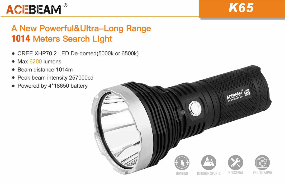 - ACEBEAM K65 Super Brightness Multifunksjonell søkelys er ditt beste valg! (politi, militær, jakt, søk, redning, klatring, fjellturer, osv.)