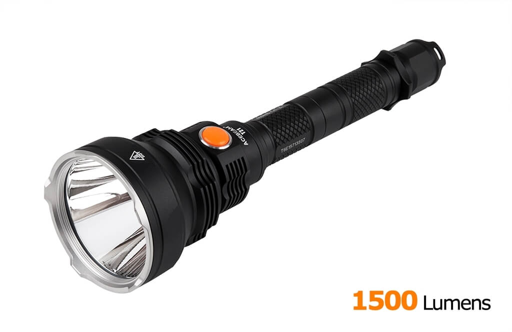 Acebeam T21 er en taktisk lommelykt og multifunksjonell drevet av 2 * 18650 Li-ion-batterier. Med en maksimal 1500 lumeneffekt, 1050 meter lyskast, er lommelykten ideell for bl.a. søk og redning, politi, militæret, industri, utendørs aktiviteter, jakt og arbeid.