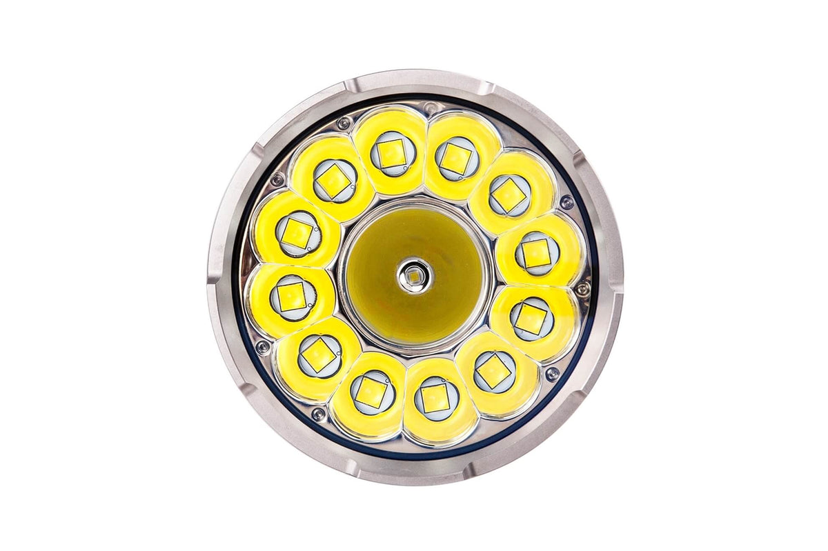 X70 lommelykten leverer hele 60.000 lumen med en kastestråle på 1,115 meter! Lumenene serveres av en Cree XHP35 HI-chip, støttet av 12 Cree XHP70.2-emittere, drevet av en oppladbar batteripakke med 8 Sony VTC6 18650 litiumionbatterier. Den er fokusert av en kompleks reflektor i en episk stråle.