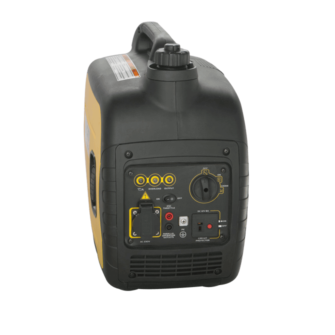 Start/stopp betjenes med felles vrider for bensinkran, choke, drift og stopp.Alfa BYG Produktnummer LC2000I Produktnavn STRØMAGGREGAT INV LC2000I-P Brennstoff Beinsin Driftstid 4,2 t Lydnivå 52~61dBA Effekt 2000W Tank-innhold 4,1 l Spenning 230V, 50Hz Vekt 21 kg LxBxH 499x285 x455mm