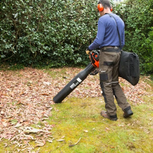 Kombinert løvblåser, løvsuger og kvern i én enhet