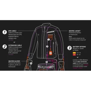 Jakken har innebygget kabling direkte til hansker og bukse slik at du kan koble til både bukse og hansker uten ekstra kabler.