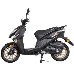 Viarelli RS50 er utstyrt med reale 12” dekk. Vedlikeholdsfri trommelbrems bak og skivebrems foran gir deg en moped som både er trygg og god å kjøre.